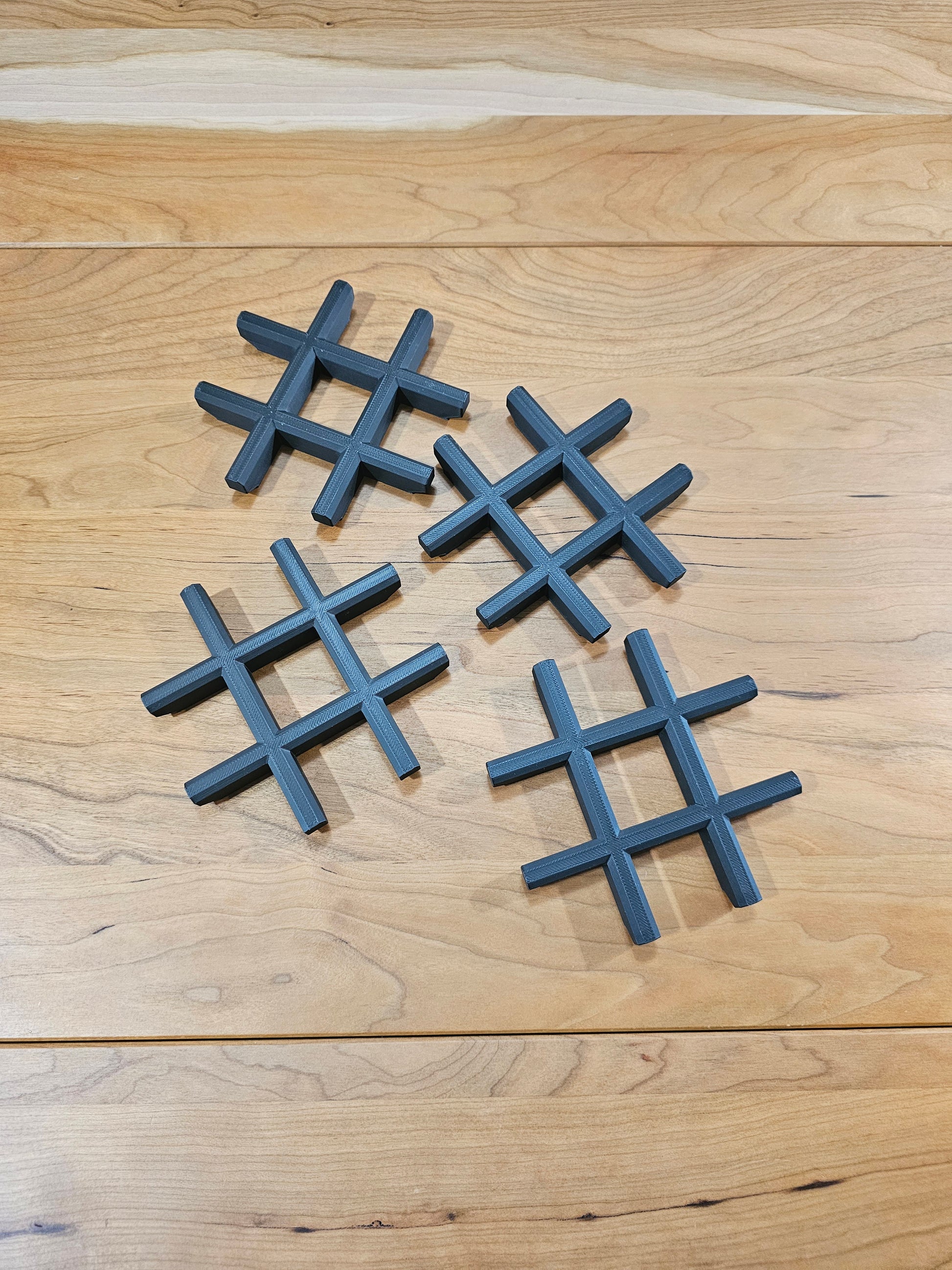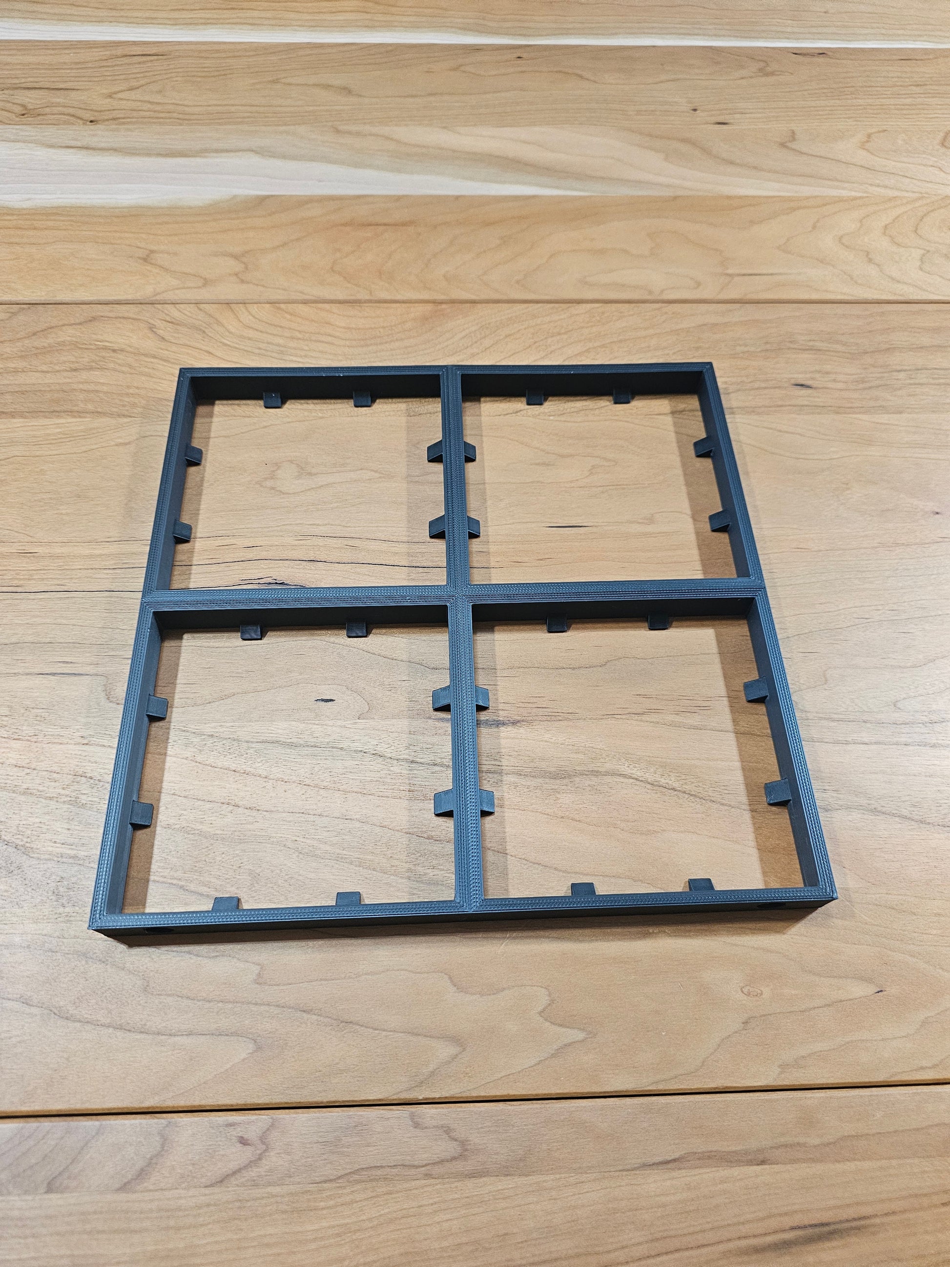 Four xl open grid bases printed as a single square segment for DungeonBlocks terrain. 3x3 adapter inset included. 3d printed to order, available in grey, charcoal, and black. unprimed, unpainted. Shown in black.